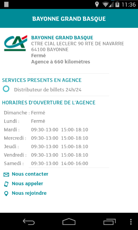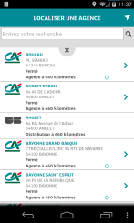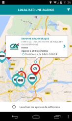 Le projet initial permet de lister les agences du Crédit Agricole les plus proches et de les afficher sur une carte. Il est ensuite possible de sélectionner l'agence de son choix afin d'avoir plus d'informations.