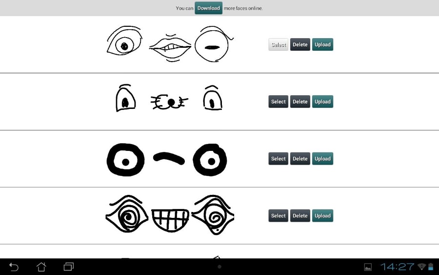 La phase de création comprend deux yeux et une bouche. Lors de la phase de jeu, nous pouvons toucher ou secouer le smiley pour voir comment il réagit. Il est possible de partager ses smiley en ligne grâce à Parse et de télécharger ses préférés.