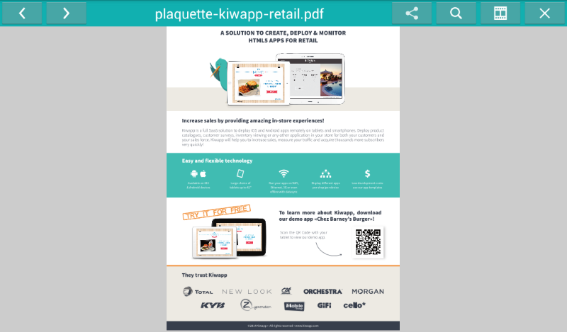 - Lecture de document : vidéo et image en natif, intégration de PDFViewer pour le PDF
