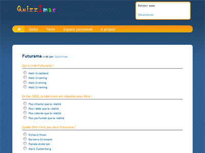 Réalisé avec Antoine Gibier et Arthur Tourneret dans le cadre de la première année d'IMAC, Quizzimac permet de tester ses connaissances en répondant à des quizz et à des tests de personnalités.