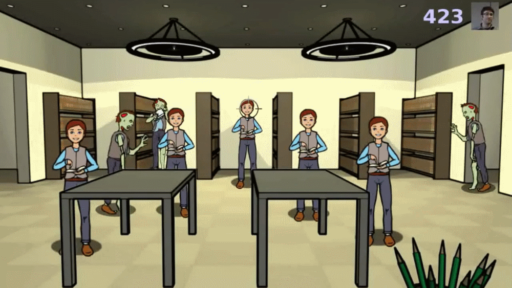 Ainsi est né Zombibli, un jeu de tir stylisé arcade jouable au kinect. De plus le jeu peut-être joué sur un écran 3D stéréoscopique, permettant une meilleure immersion.
