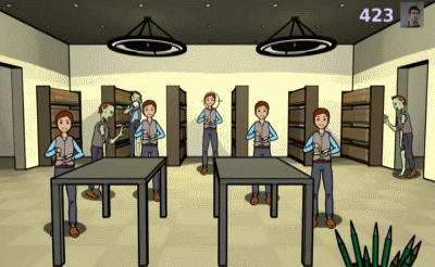 - Fin de la partie lorsqu'il n'y a plus d'étudiant en vie